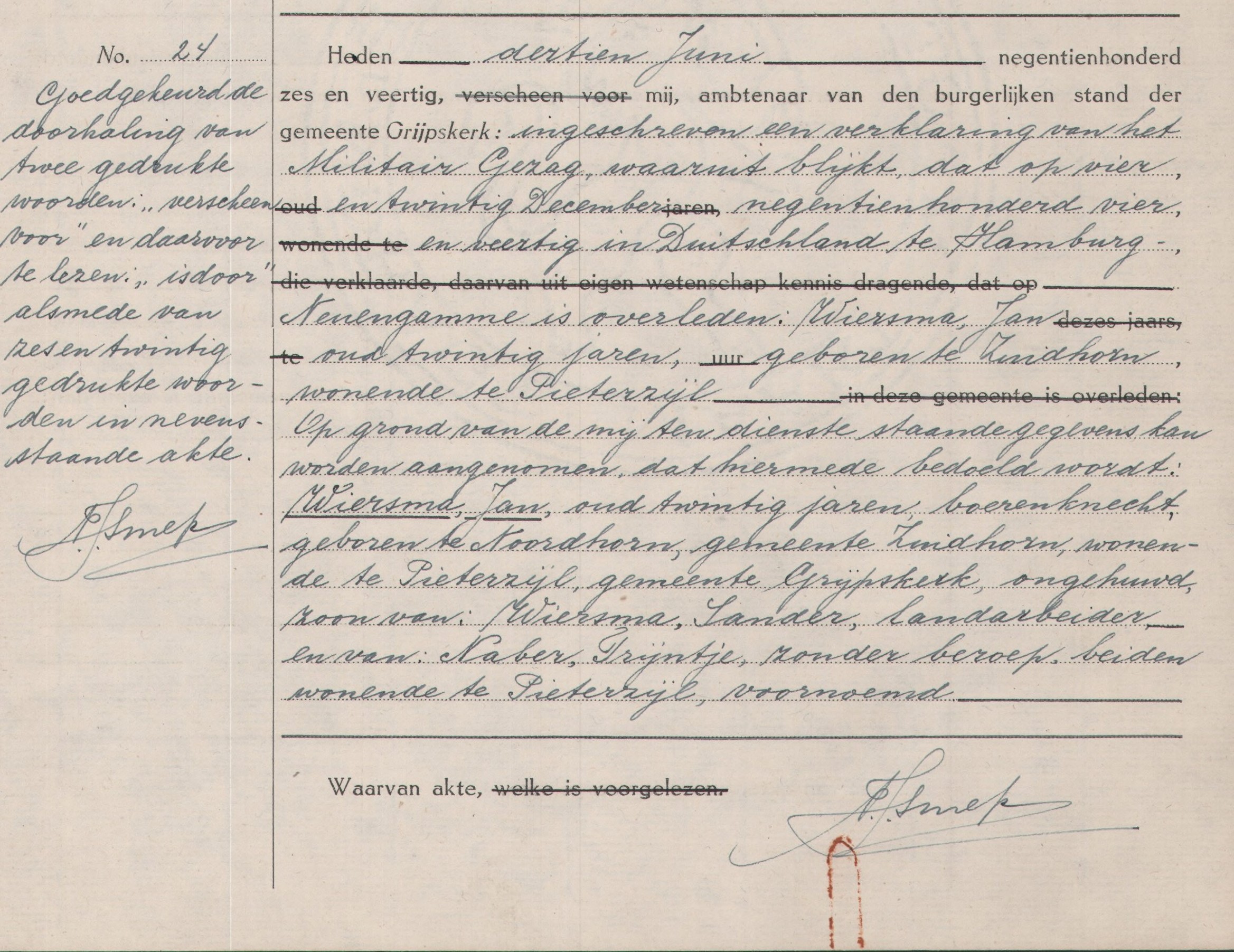 09-04-1924 te Zuidhorn †24-12-1944 te NeuengammeJan Wiersma - 20 jaar (Landarbeider)